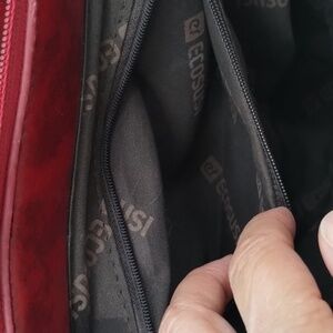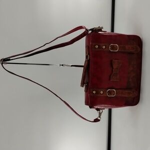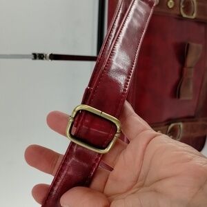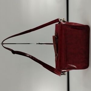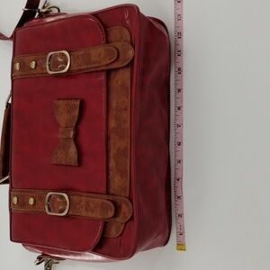 ECOSUSI faux leather red and tan satchel with removable crossbody strap