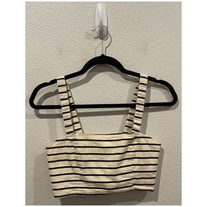 ECOTE Striped Button Back Ivory Black Crop Top. Size M