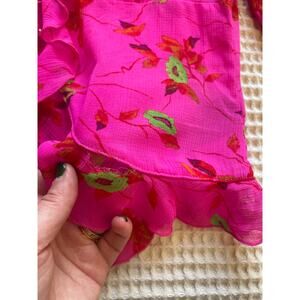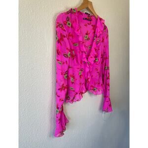 ECOTE Urban Outfitters Pink Floral Flutter Long Sleeve Ruffle Blouse Small Y2K