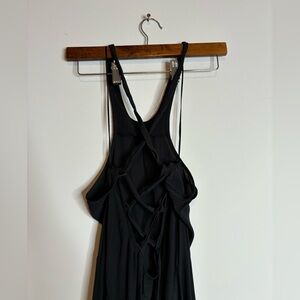 Great conditions beach dress. No stains, rips or bad odor. Color black. Comfortable loose fit. Has high and low cuts.Is a bit sheer. Great for Summer and beach nations, Straps on the back in a zigzag way, Halter neck. Please see pictures for more details.