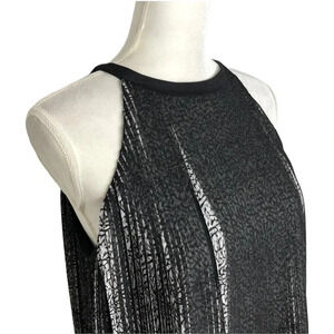 ECRU • Accordion Fan Fold Pleated Floral Print Sleeveless Babydoll Blouse. Lined. Concealed half zip back.
