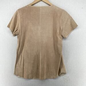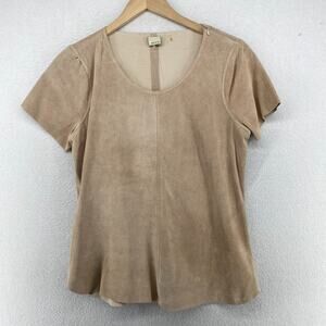 ECRU Brand Top Womens S Suede Leather Short Sleeve Scoop Neck Minimalist Beige