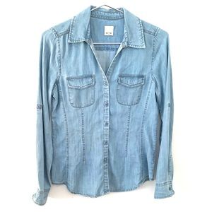 ECRU Denim Fitted Collar Shirt in Light Blue Was