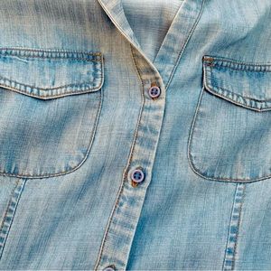This denim shirt features long sleeves, shirt details with a fitted waist. It is made in a 100% organic cotton quality.