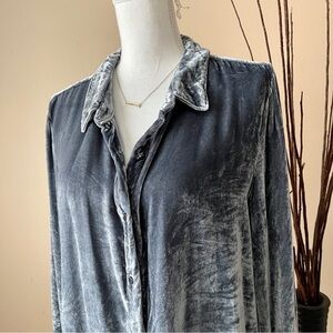 Preloved ECRU | Gray Silk Blend Velour Button Down Shirt Sz XL. In excellent condition.