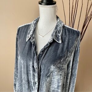 ECRU | Gray Silk Blend Velour Button Down Shirt Sz XL