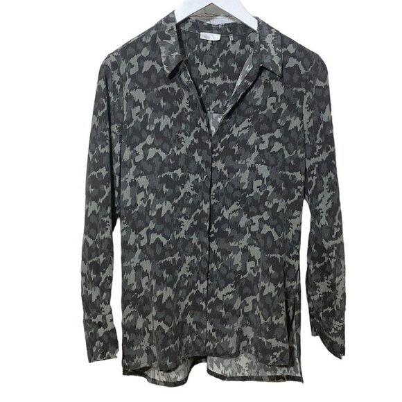 ECRU STYLE Womens Silk Blouse Size XS Gray Camo Long Sleeve Top Button up