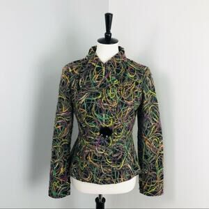 ECRU by Florence Korn Multicolored Yarn Scribbles Fitted Pea Coat Jacket Sz 6