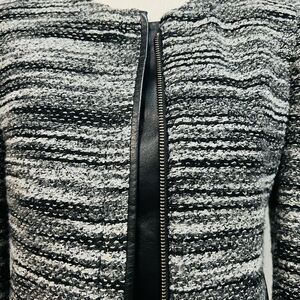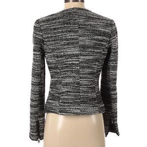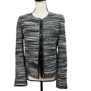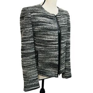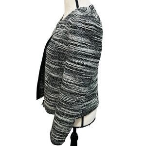 ECRU Womens Gray black metallic tweed collarliss blazer full zip jacket size 4