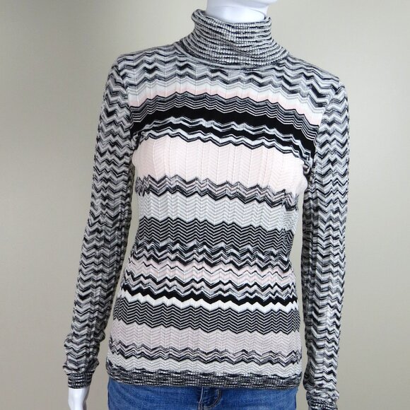 ECTETERA Chevron Knit Turtleneck Sweater SIZE Small