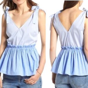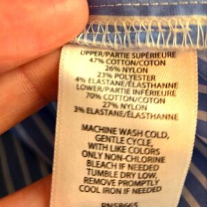 Mixed stripes. Ties on the sleeves. Flowy bottom half of top. Elastic waist.Materials are in the pics. Chest:19" from armpit to armpit. Waist:16.5" from side to side, but it does stretch. Length:16" from the armpits down.