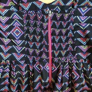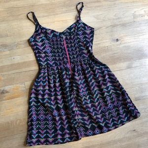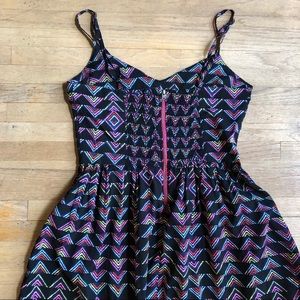 The Perfect sundress in great condition with adjustable straps, pleated bodice, pink back zip and elastic panels making fit flexible and comfortable!
