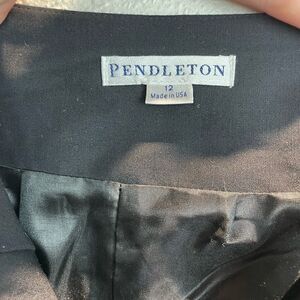 ECU Classic Pendleton Womens Black Skirt Virgin Wool with Pleats In Back Size 12. It measures 16 inches at waist and 24 inches in length.
