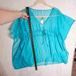 ECho Design NWT OneSize TURQUOISE blue Swimcover. Sheer. Delicate. Sexy. Classy