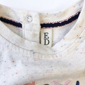 Adorable ED by Ellen Degeneres “I Choose To Be Me” romper. Bottom fully snaps for easy on off. There are two slits on the sides of the legs that are unraveling a little (see pics) but tons of life left in this cute piece! Good used condition. Size 3 months.