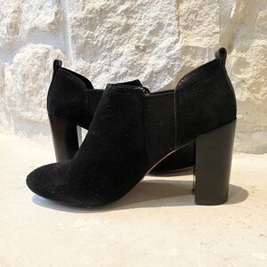 ED Ellen Degeneres Mahoney Booties Ankle Heels Pull On Suede Black Size 7.5