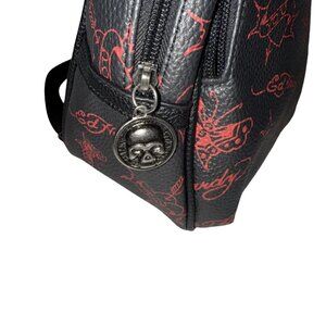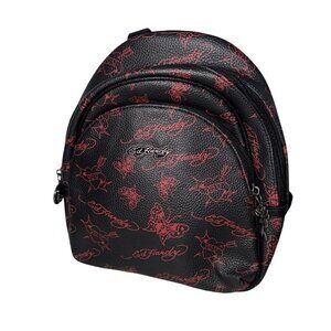 ED HARDY Black & Red Small Backpack Faux Leather Butterfly Design You Heart