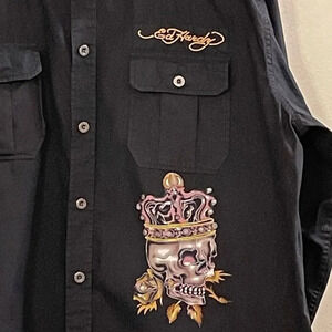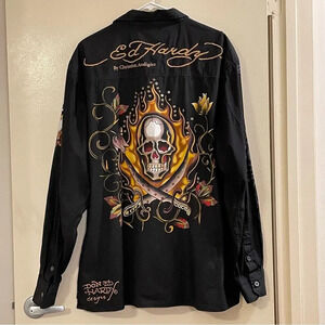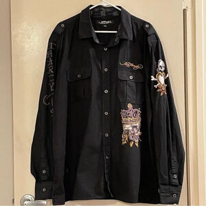 ED HARDY By CHRISTIAN AUDIGIER Long Sleeve Embroidered Button Down Shirt