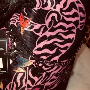 ‼️ ED HARDY Floral Pink and Black Tote Bag w/ charms