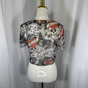 Ed Hardy Women's Mesh Sheer Tattoo Top XL Cropped Y2K Skater Goth Whimsigoth