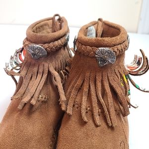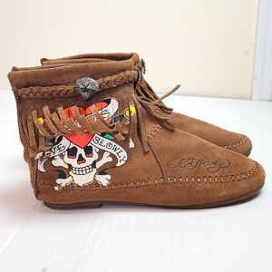 ED HARDY Suede Leather Fringe Moccasin Ankle Boots