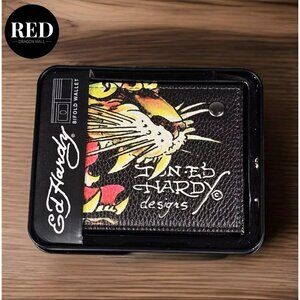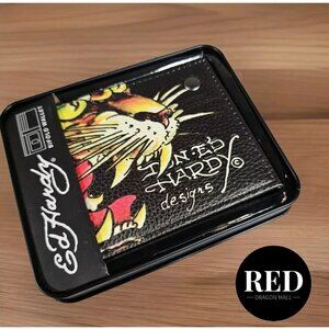 ED HARDY TIGER BLACK BIFOLD WALLET WITH METAL BOX - NEW