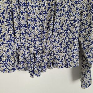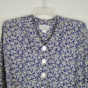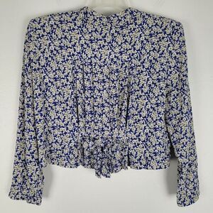 E.D. Michaels Size 5-6 Vintage Crop Blouse Buttons Long Sleeve Floral Blue