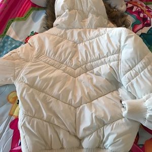 EDC by esprit sm white fleece coat with fur hoodie