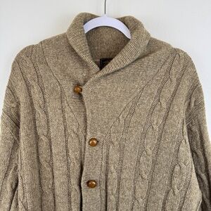 EDDIE BAUER 100% Wool Men's Cardigan Button Up Sweater Cable Knit / Size Large