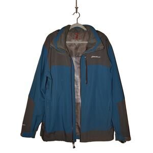 EDDIE BAUER $109 WeatherEdge Plus Hooded Zip Jacket Blue Gray Men's Large