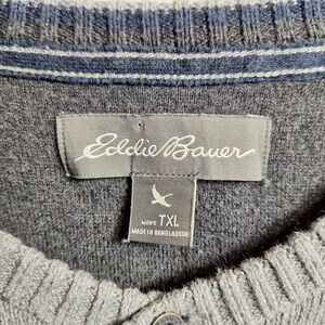 EDDIE BAUER 90s Y2K Style Henley Sweater Sz XL/Tall Gray Heavyweight Grunge GUC!