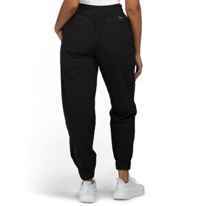 elastic cuffs, elastic back waistband, drawstring waist, textured finish, lightweight and breathable, fabric provides stretch