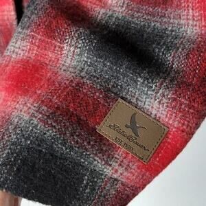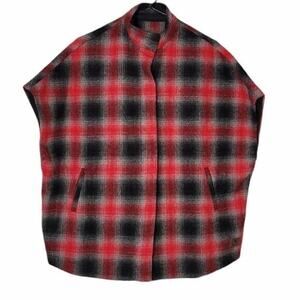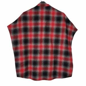 EDDIE BAUER Black, Red, Gray Oversized Plaid Wool Blend Poncho Women's XS