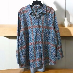 EDDIE BAUER Boyfriend Flannel Shirt Aztec Print Heather Grey Woman’s Size 2X NWT