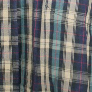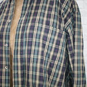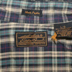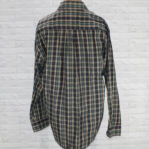 EDDIE BAUER Button Down Long Sleeve Plaid Casual Teal Navy Blue Classic Large