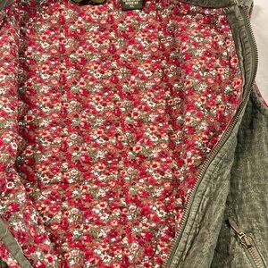 ~~EDDIE BAUER Corduroy Quilted Green Vest Women's XL Zip Pockets Floral Lined