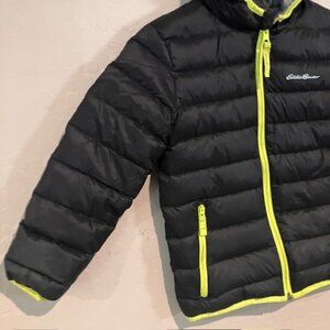 EDDIE BAUER Down Hooded Puffer Coat Boy's Black Green Reversible Size XS 5/6
