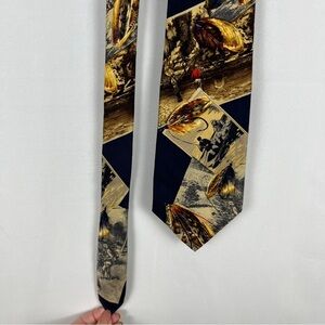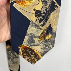 EDDIE BAUER Fly Fishing Theme Tie 100% Silk Gorpcore Dad Gift Blue Outdoors