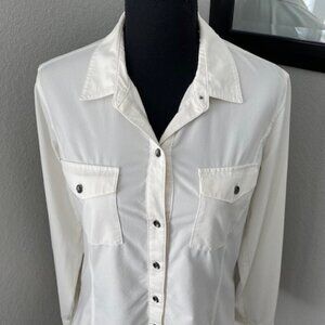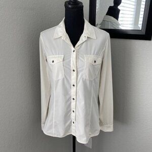 EDDIE BAUER Ivory Snow Travex Departure Stretch Long Sleeve Shirt Medium