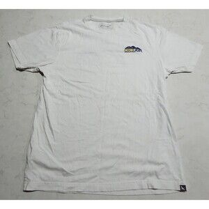 This Eddie Bauer T-Shirt in size M features a crew neck and short sleeves, with a relaxed fit for easy wear. The white shirt is made of a polyester-cotton blend and has a solid base with graphics of an aircraft maintenance and repair logo. The shirt is machine washable and easy to care for, making it perfect for all seasons, including winter, summer, fall, and spring.