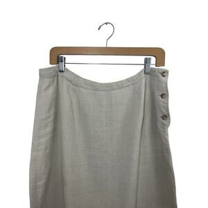 EDDIE BAUER Light Biege 100% Linen Skirt Size 14P Slit Neutral Boho Long Tan