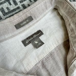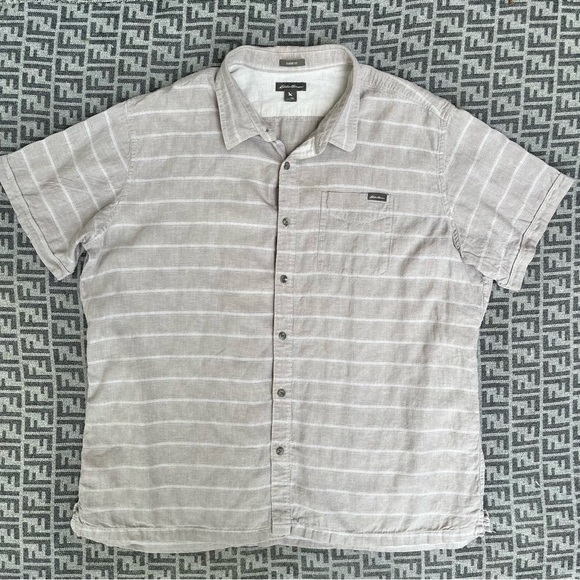EDDIE BAUER Linen Blend Short Sleeve Button Down - Gray/Beige - 2XL