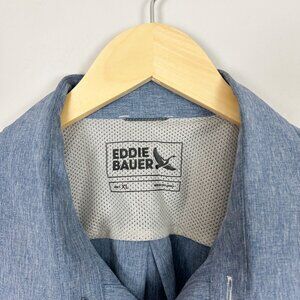 EDDIE BAUER Lineup Tech Shirt Size XL Blue Chambray Button Down Shirt Men's