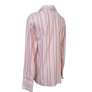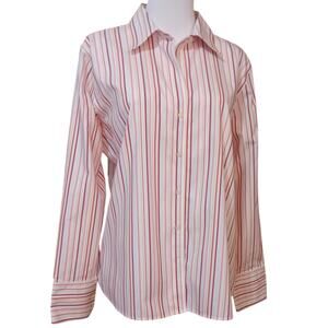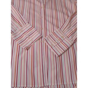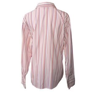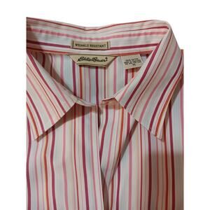 EDDIE BAUER Low Wrinkle Button Front Shirt Blouse Top Pink Stripe XL Casual Work