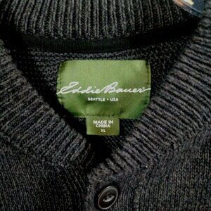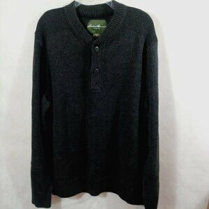 EDDIE BAUER MEN'S PULL-OVER SWEATER SIZE XL DARK GREY 3/4 BUTTONS FRONT CLOSURE