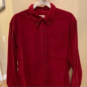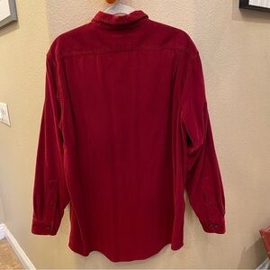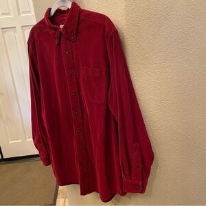 Pre-owned in great condition with no rips or stains. Men’s nice red/cranberry color corduroy buttoned long sleeve shirt. Great colors for the holidays. Comes from smoke and pet free home.