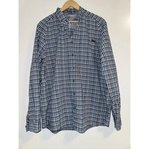 EDDIE BAUER Mens Classic Fit TL Large Tall Green Blue Plaid Long Sleeve Shirt