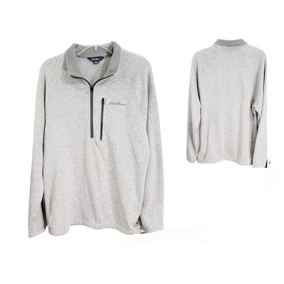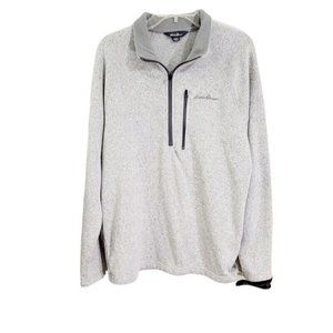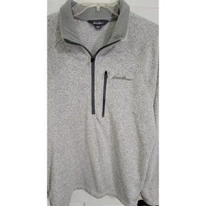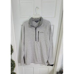 EDDIE BAUER Men’s Large Gray Fleece-Lined Sweater Pullover 1/2 Zip Long Sleeve