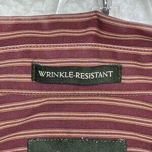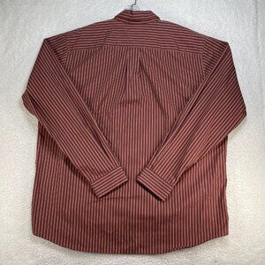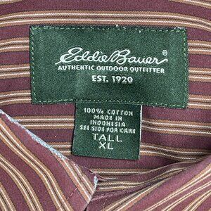 EDDIE BAUER Mens XLT Tall Wrinkle Resistant Red Striped Long Sleeve Shirt Pocket