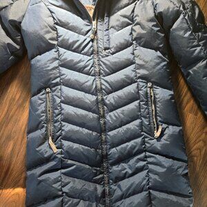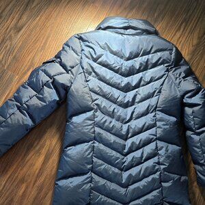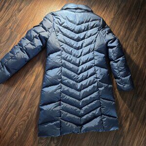 EDDIE BAUER Midi Length Navy Blue Down Filled Puffer Parka Coat NWOT/SIZE PS